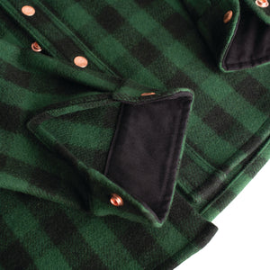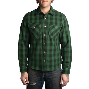 This heavyweight wool work shirt is an outdoor classic. Made from a 15oz deadstock Canadian wool, it is naturally weather resistant and insulating. Wool blocks the wind and rain while still giving you breathability. Inside is a canvas top panel for added warmth and comfort, in addition to canvas lined cuffs. Our signature raw copper snaps are strong and built to last. Sewn in California, finished in our Michigan shop. The model is 6ft, 185lbs and is wearing a Medium. Limited run.